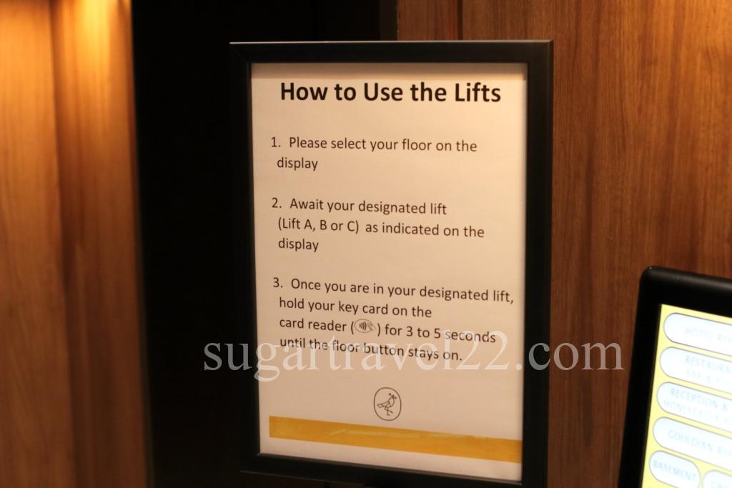ルームキーをかざすと、(おそらく)一番早く来るエレベーターが表示されるのですが、いまいち反応しているのかがよくわからず、乗り合わせたオジ様とも「よくわからないよね?」と共感していました(笑)