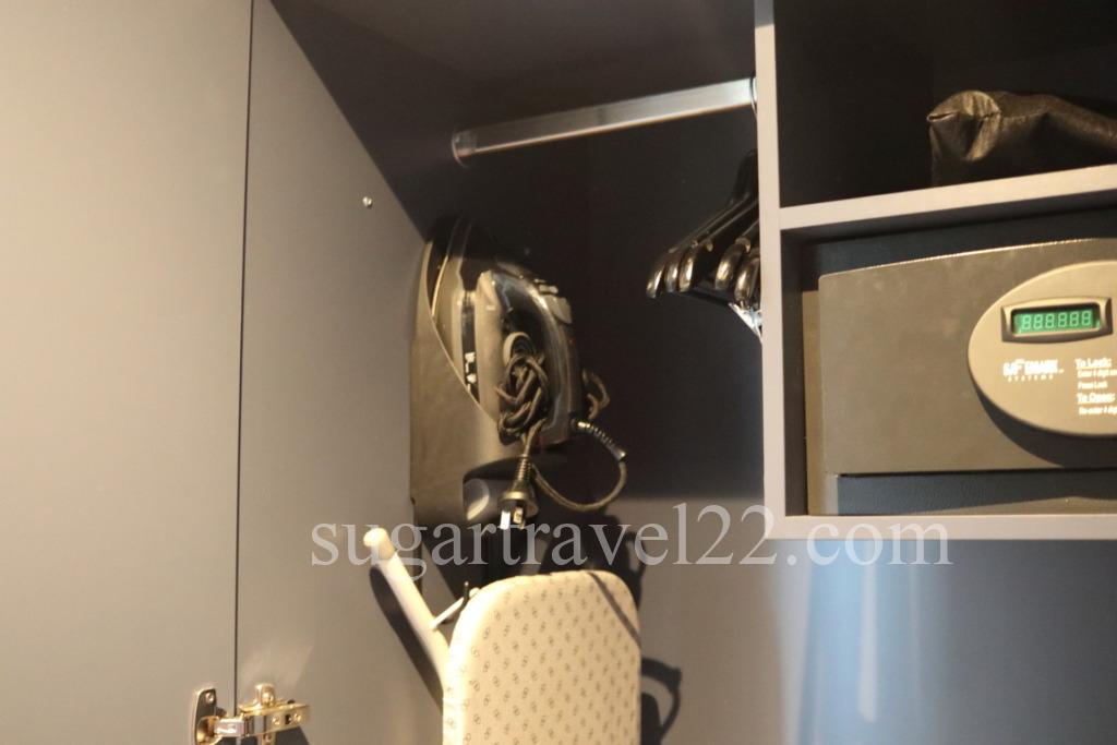エントランス入ってすぐにクローゼットがあり、アイロンやセキュリティーボックスなどが備わっていました。