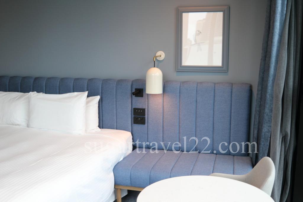新しいホテルはベッドサイドのコンセントとUSBはデフォルトですね。