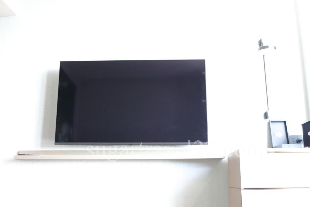 ソファーの正面は壁掛けテレビでベッドルームと同じサイズのものでした。