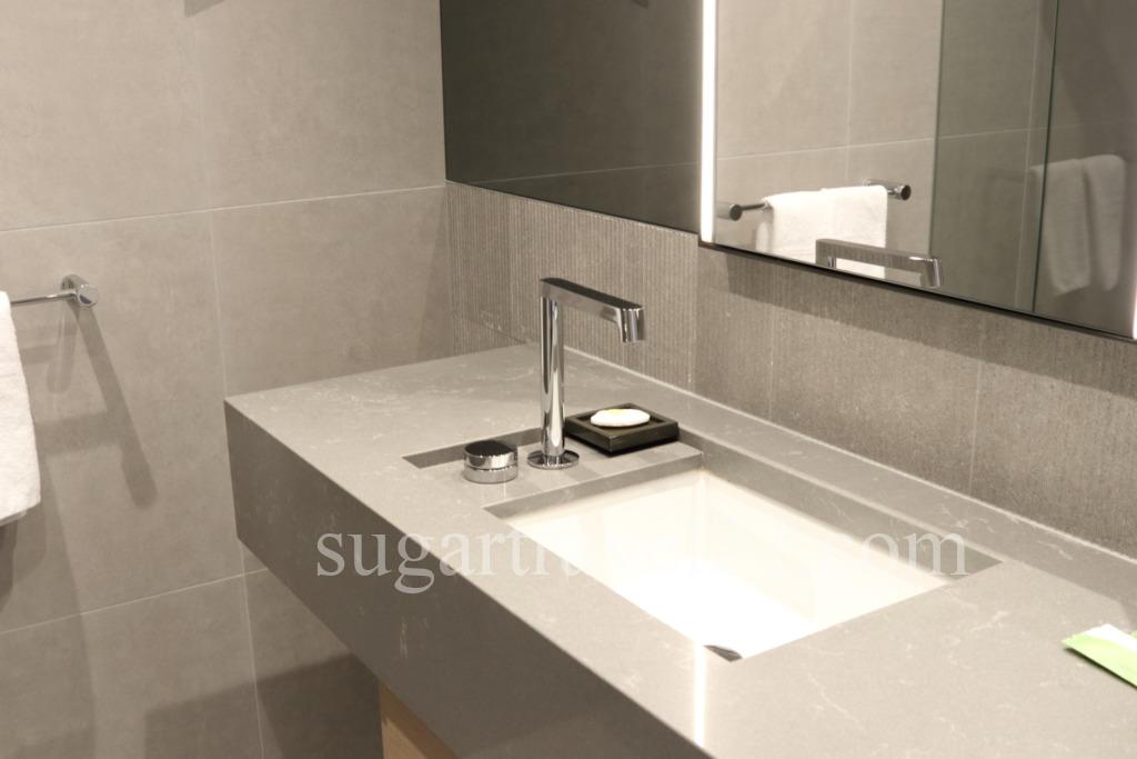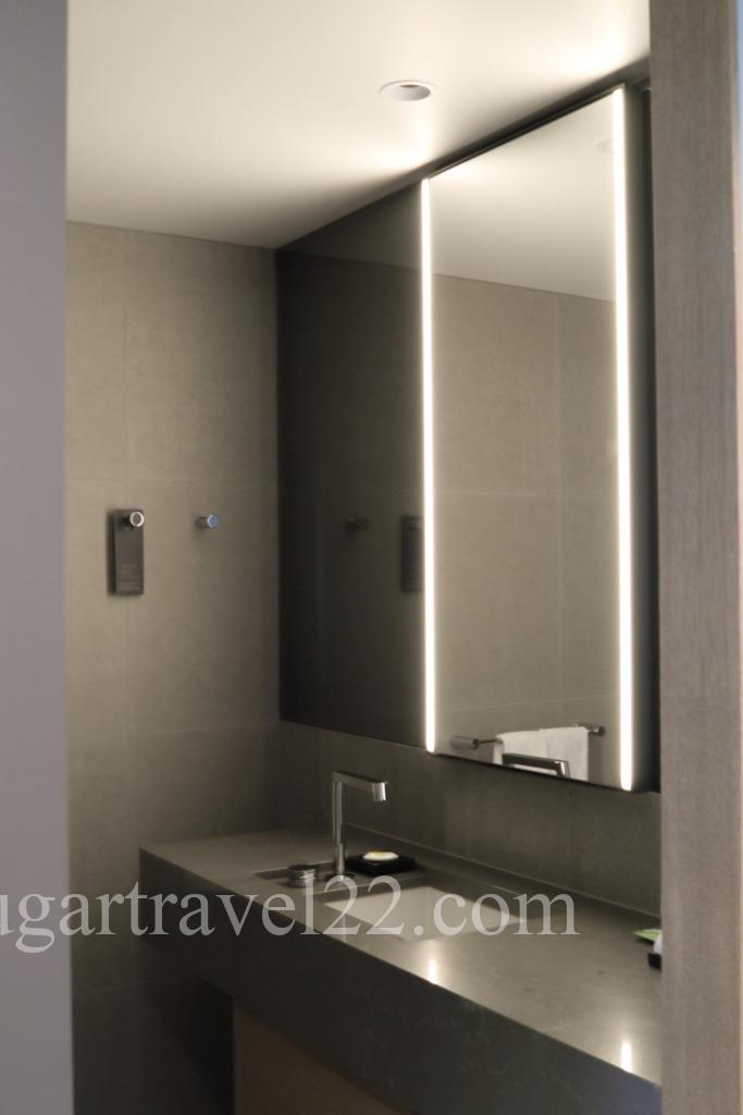 天井までの大きな鏡が備え付けてあるので、とても広く感じます。
