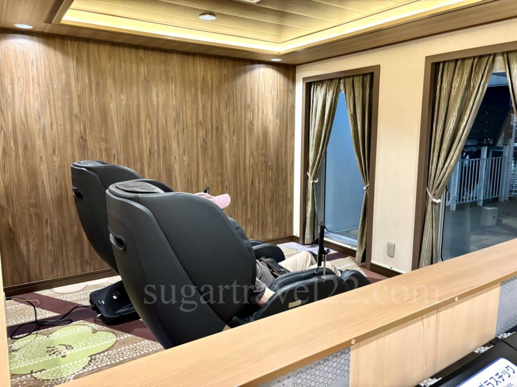 ベッドで横になって休めて、展望浴場で入浴もできるため、体への負担はかなり少なめ。