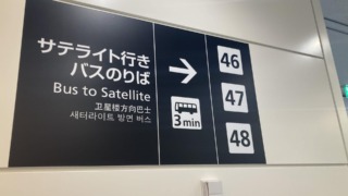 搭乗口が46〜48の人がサテライトを利用することになり、バスで移動します。